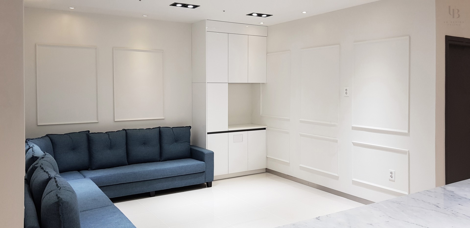 이번 프로젝트는 모던 클래식 컨셉으로 고급스러운 분위기의 피부과 디자인입니다. 네이비 컬러로 무게감을 잡고 금속 및 유광 타일의 조합으로 럭셔리한 분위기를 연출했습니다. 전체적으로 직선적인 요소를 사용하되 웨인스코팅과 화이트 톤의 벽타일이 포인트로 클래식함과 미니멀을 조합하여 트렌디한 컨셉을 녹여내고자 합니다.